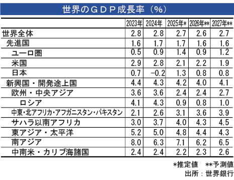 世界銀行は13日に発表した世界経済の成長見通しの中で、今年のユーロ圏の域内総生産(…