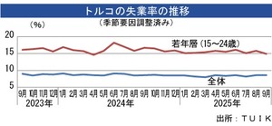 トルコ統計局(TUIK)は23日、7月の消費者信頼感指数(稼働日数・季節要因調整済み)が75.9ポイントとなったと発表した。前月から2.4ポイント低下した。